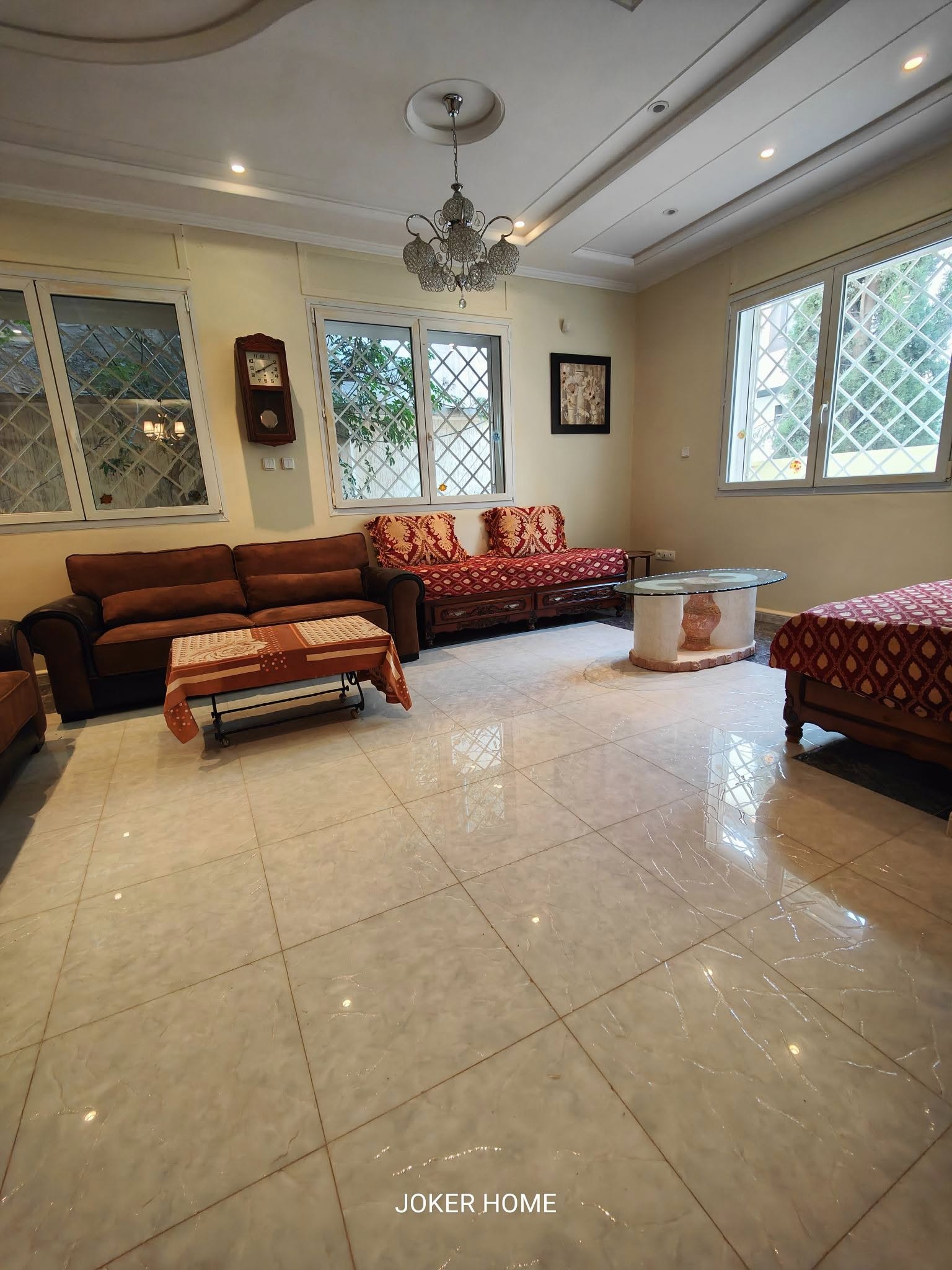 La villa comprend un **garage** pouvant accueillir **4 voitures**, une **chambre froide**, une petite pièce supplémentaire, un **dressing**, un **hammam** avec serpentin, ainsi qu’une **bâche à eau**, idéale pour garantir une réserve d’eau suffisante.